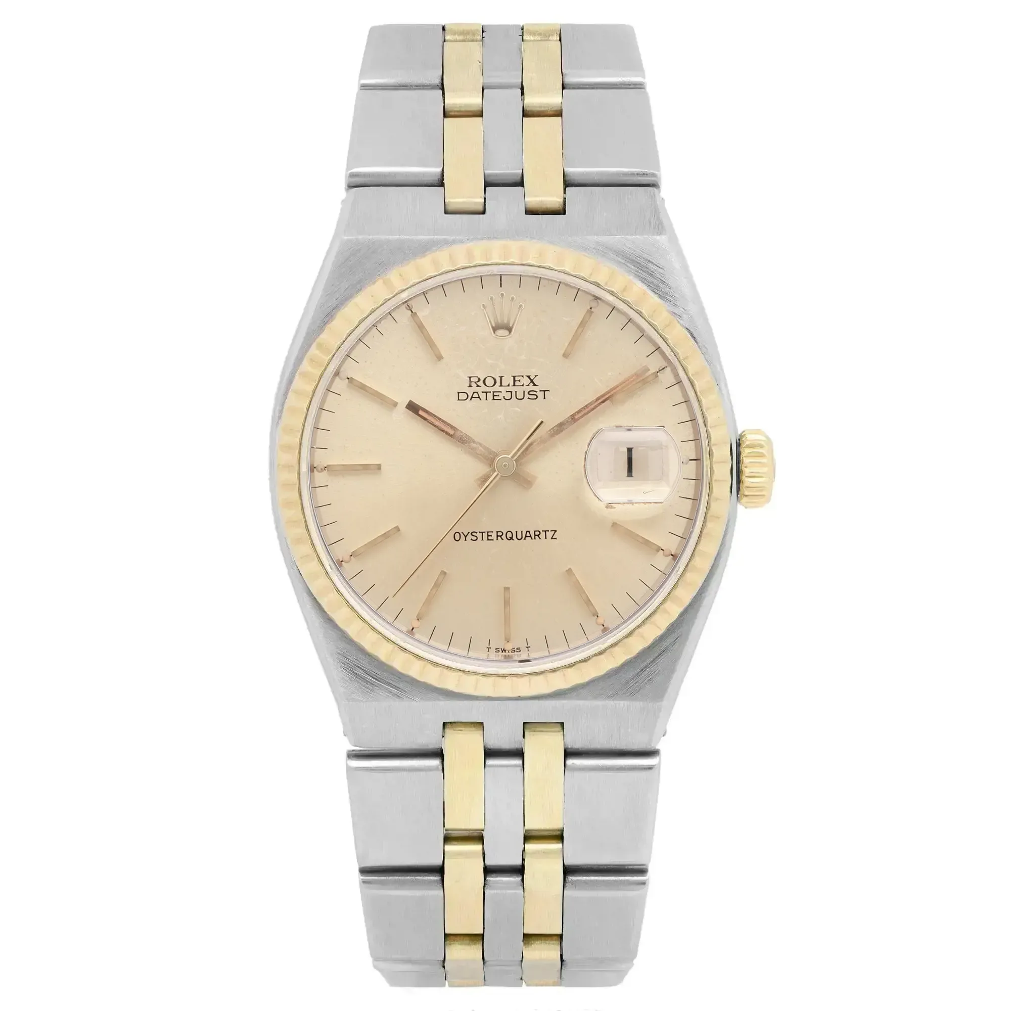 Rolex Datejust Oysterquartz 36mm 18K Gold Steel Champagne Dial Mens Watch 17013