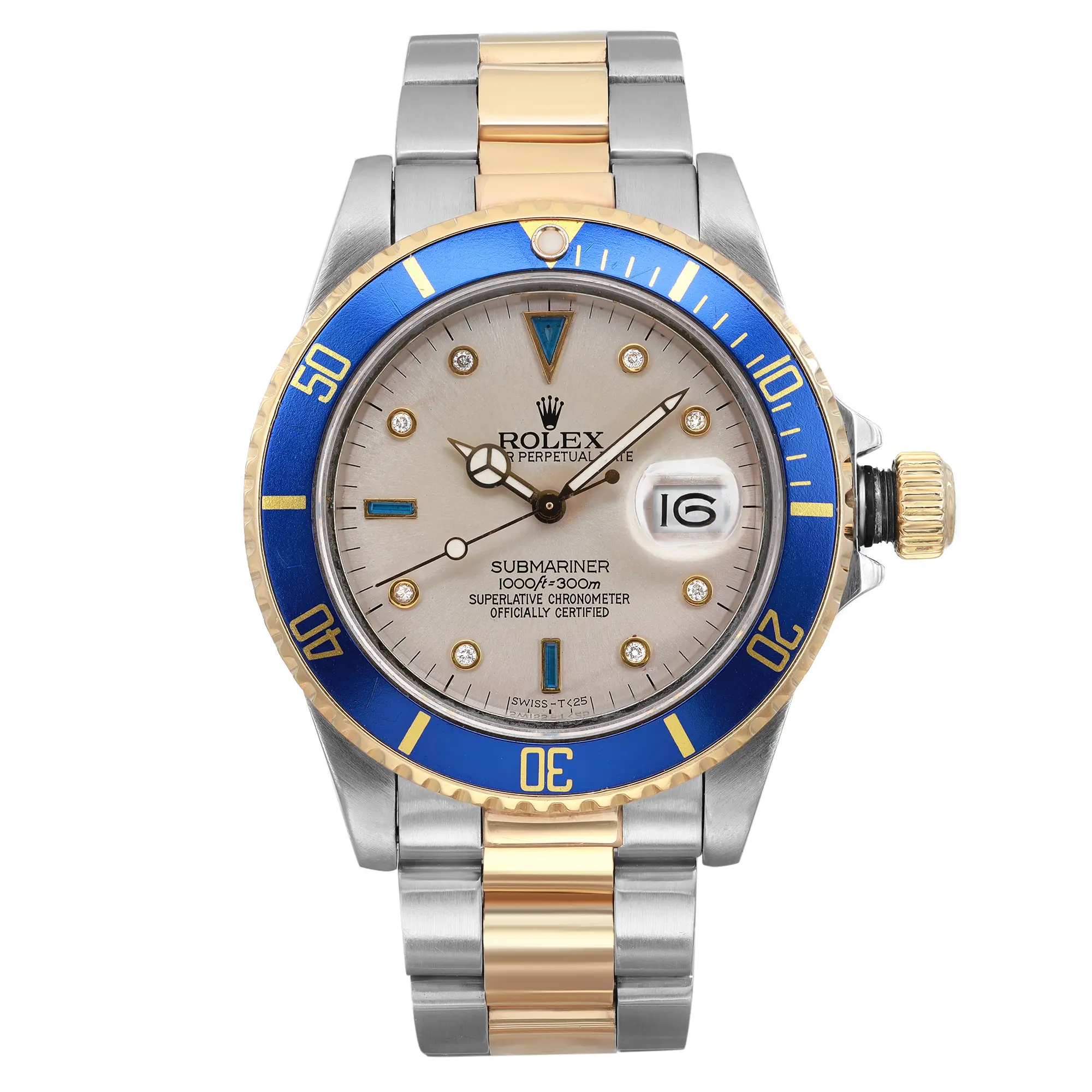 Rolex Submariner 40mm 18k Yellow Gold Steel Custom Serti Dial Men Watch 16803